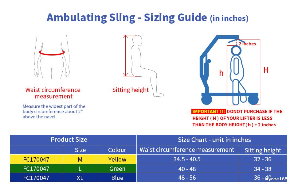 *When the patient is physically well after a health assessment, the sling is suitable for gait movement. *This sling provides stable support and full mobility of the upper torso, enabling individuals to exercise in a rehabilitation setting and environment. *Adapts to an individual's various upright postures with multiple loops on six shoulder straps. *Color-coded loop strap for height posture adjustment.There is a cushion in front to let disperse the pressure point in the chest during gait movements. *Please ask for male and female use, available upon request.