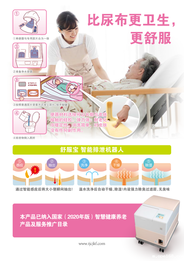 当患者意识上有大小便排泄时,镶嵌在臀部垫下面的感应功能芯片,传导到管理中心,电脑即时发出指令:瞬间开启吸收功能键,将排泄物排泄到污物桶。 自动开启温水冲洗功能键,清洗大小便排泄处。 自动开启干燥除湿功能键,将私处用微微的暖风吹干,患者长时间的使用不会出现红疹及褥疮等现象。