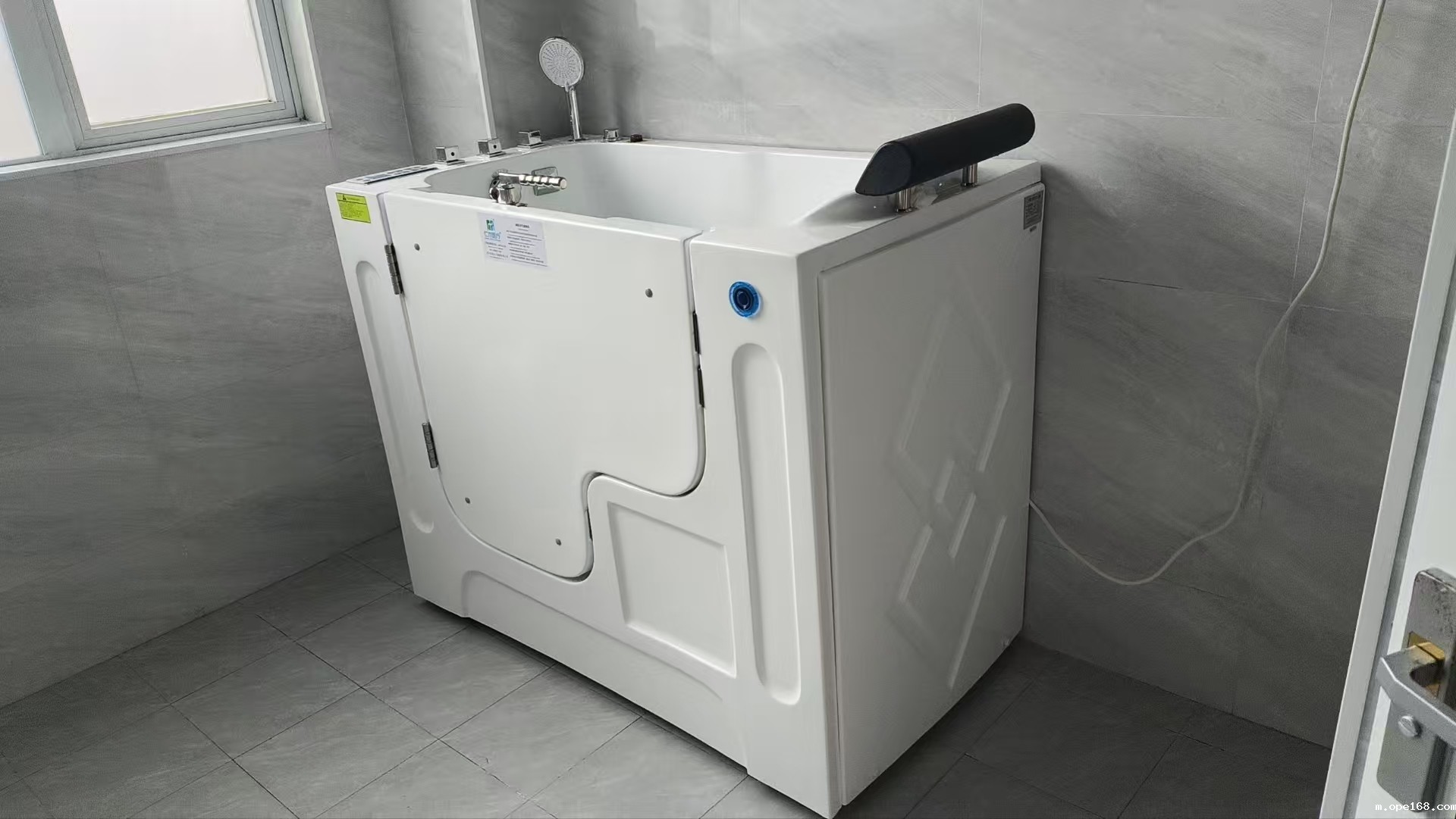 RH-902老人无障碍康复浴槽,1300×750×1150 mm可开门设计,304不锈钢门锁、低门槛进出。亚克力缸体无甲醛、无刺激,460 L水量,6涡流+60孔气泡三档按摩,32点LED光疗随温变色警示。LCD触控恒温处方30组一键调用,蓝牙音乐、臭氧消毒<0.01 mg/m³。水电分离双漏保,220 V/1.1 kW,CE认证,已入国家康复辅具目录,适用于养老院、社区及家庭,给失能、半失能长者