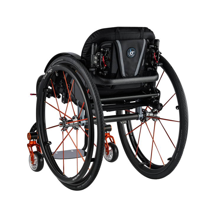 The main frame is made of aerospace-grade composite carbon fiber, multi-layer composite carbon fiber (T700) technology, lightweight and structural strength reach the first-class level, can withstand extremely high and extremely low temperatures, have high strength, high temperature resistance, corrosion resistance, etc. Features. The backrest can be easily folded forward, and the large wheels can be quickly removed with one button. The whole vehicle is designed for efficiency and speed, and the conversion efficiency is 5%-20% higher than that of other metal frames.