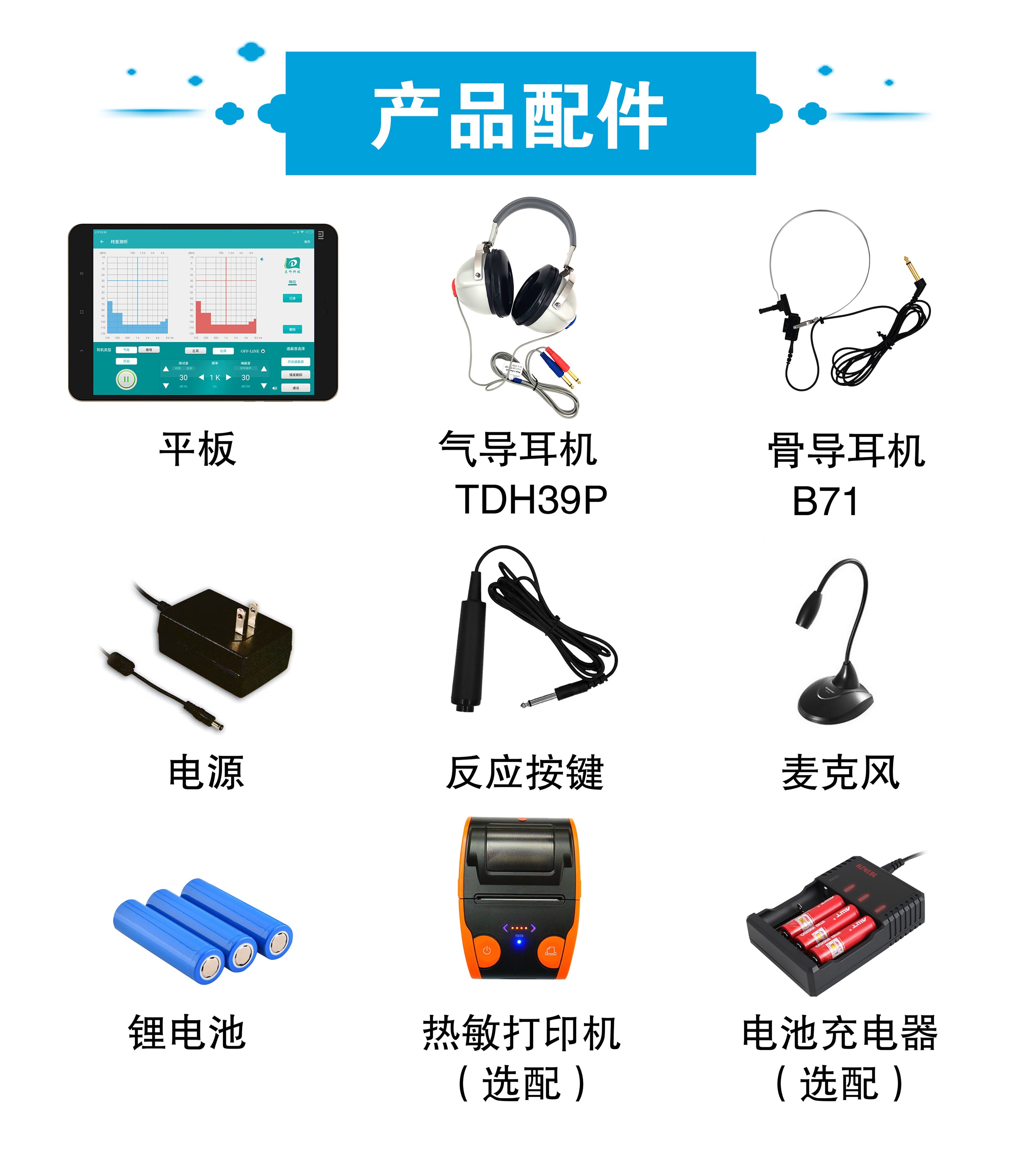 DT261 is a portable diagnostic audiometer that supports air conduction, bone conduction testing, and extended functionality (speech audiometry). It is a software that uses Bluetooth wireless control on a tablet, which is lightweight, compact, powerful, and has good user interaction. It has data confidentiality and data interconnection functions, and is the perfect solution for mobile high-end audiometers. Convenient for hospital reception and doctors to conduct free consultations outside.