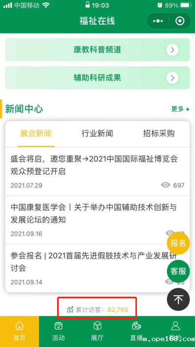 “福祉在线”小程序,是参展企业的线上展厅,可发布产品及活动信息。