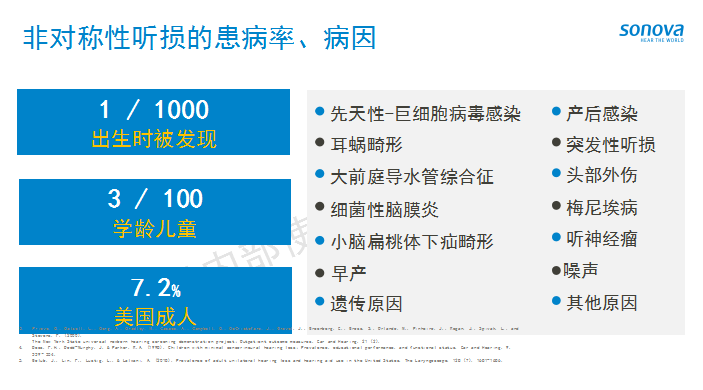 非对称性听力损失属于听力学的疑难杂症之一,主要指两个连续频率下双耳听力阈值差异≥20 dB,或在 2,000 Hz 和 8,000 Hz 之间的任何两个频率下,双耳听力阈值差异≥15 dB 。
