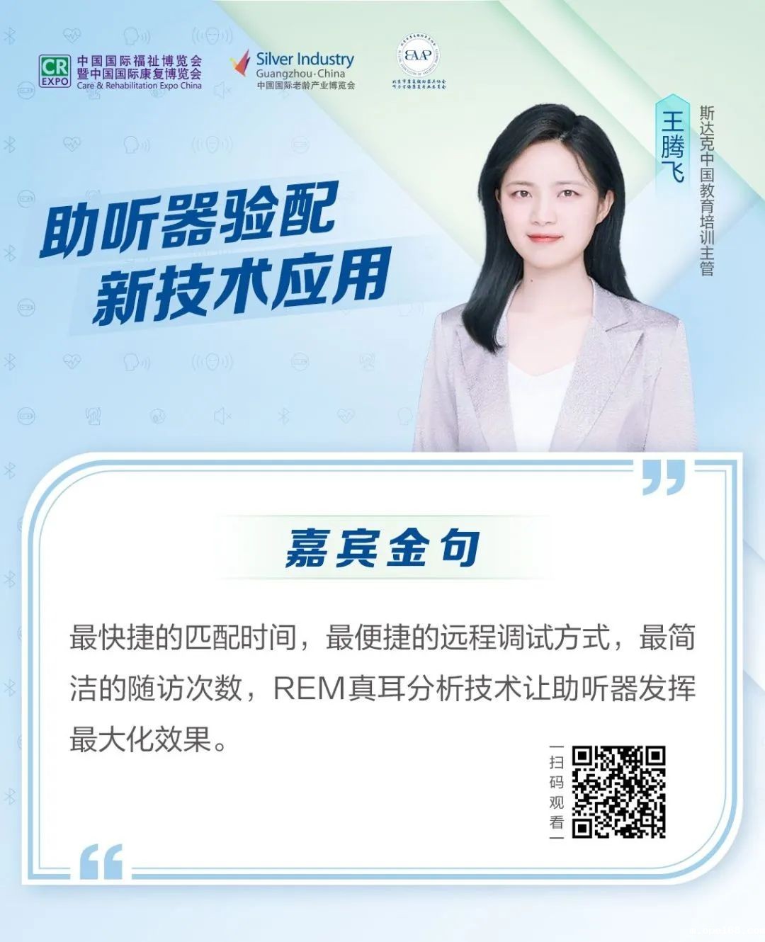 伴随社会对于听力残障人士的包容和关注的提升,助听器配验技术迅速发展。2022年5月31日,米兰国际足球直播在哪看(CR EXPO)联合北京市康复辅具协会听力言语康复专业委员会共同举办以“助听器验配新技术应用”为主题的线上交流会。