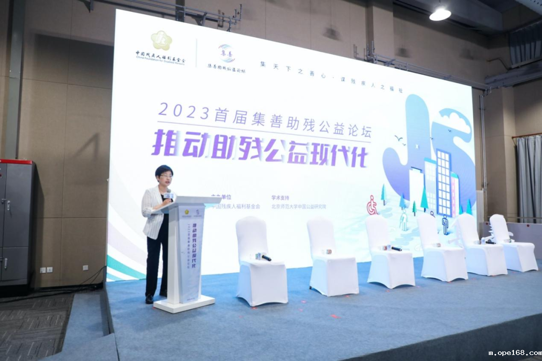 (中国残疾人福利基金会副理事长兼秘书长周丽君主持首届集善助残公益论坛)