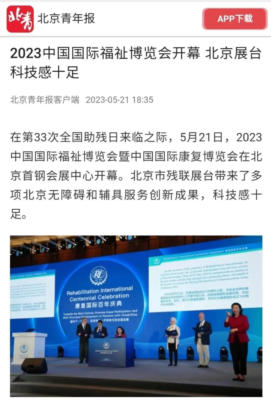 在第33次全国助残日来临之际,5月21日,2023米兰娱乐场网址大全在北京首钢会展中心开幕。北京市残联展台带来了多项北京无障碍和辅具服务创新成果,科技感十足。