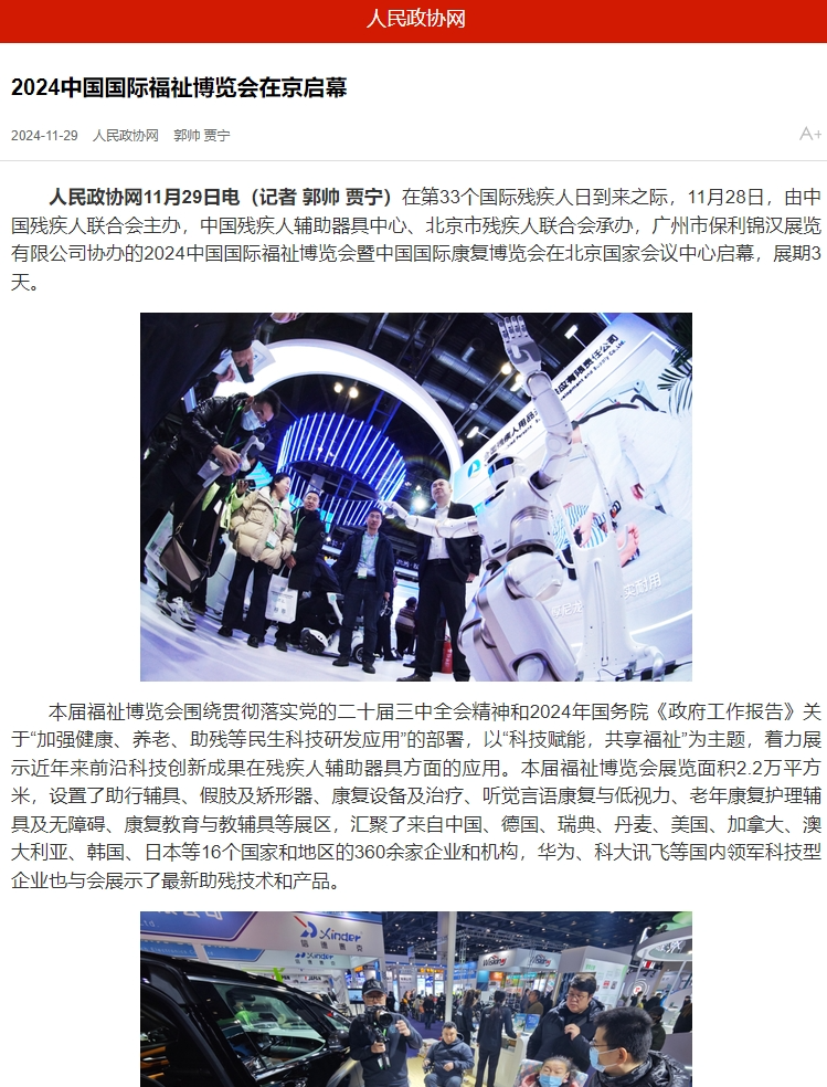 在第33个国际残疾人日到来之际,11月28日,由中国残疾人联合会主办,中国残疾人辅助器具中心、北京市残疾人联合会承办,米兰国际公司协办的2024米兰娱乐场网址大全在北京国家会议中心启幕,展期3天。