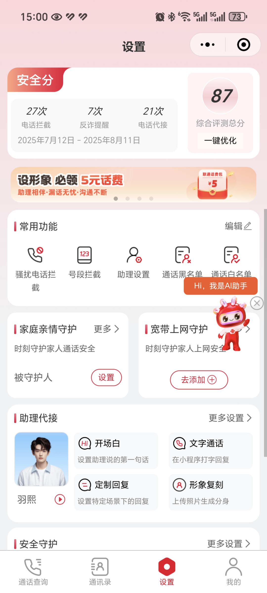 通信安全管家是围绕通话安全、短信安全、亲情守护、手机上网守护、宽带上网守护五大场景打造的一款集涉诈识别、智能处置于一体的防诈骗、防骚扰产品,旨在为用户提供一个更加安全、智能的通信环境。
