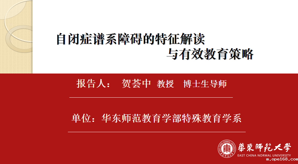 华东师范大学自闭症研究中心主任贺荟中教授则结合实际案例对自闭症谱系障碍的特征进行解读,并据此提出有效的教育干预策略。