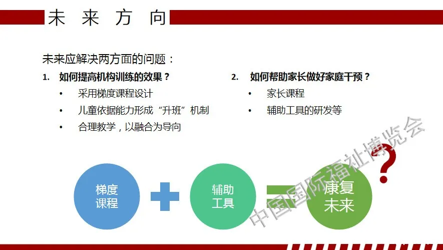 对于ASD康复的未来方向,贾美香教授强调应从提高机构训练的效果和帮助家长做好家庭干预两方面着手: