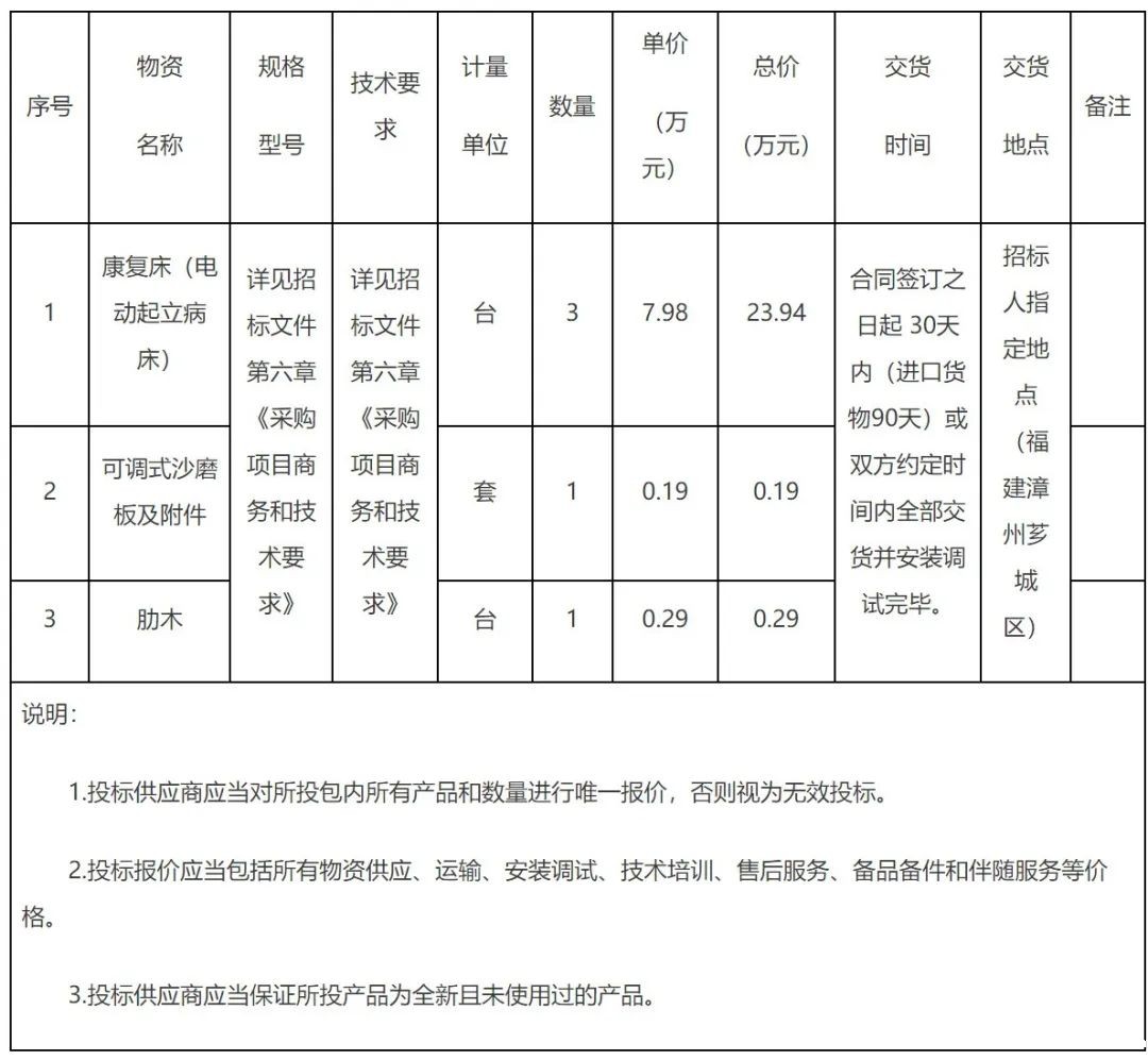 漳州某单位康复床及康复辅助器具采购招标公告(2024-JQ16-W1051)