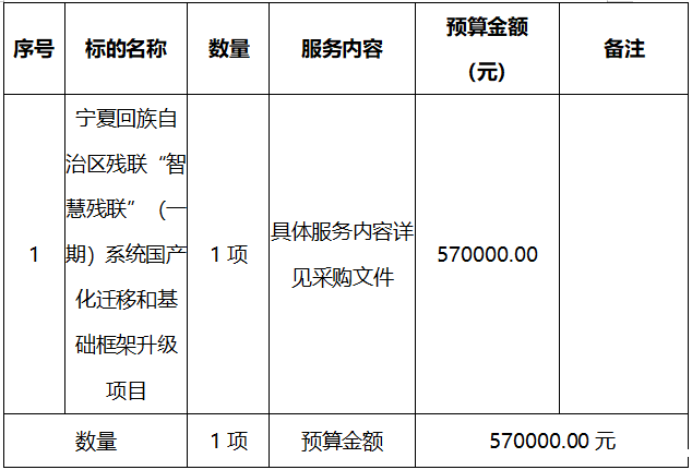 宁夏回族自治区残联“智慧残联”(一期)系统国产化迁移和基础框架升级项目竞争性磋商公告
