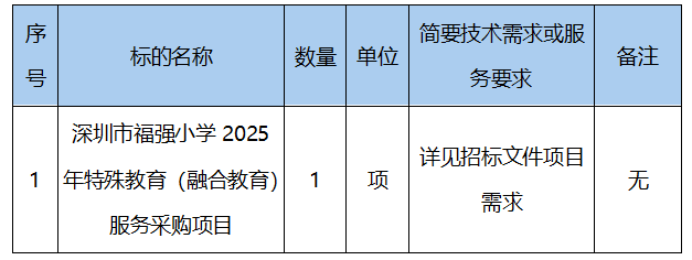 深圳市福强小学2025年特殊教育(融合教育)服务采购项目招标公告