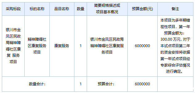 银川市金凤区民政局精神障碍社区康复服务项目招标公告