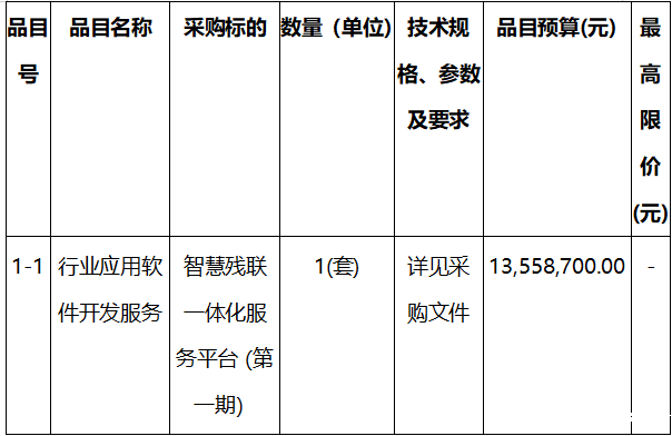 黑龙江省残疾人联合会项目建设内容包括“智慧残联”一体化服务平台(第一期)招标公告