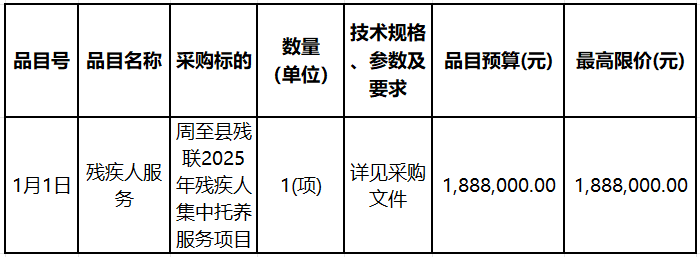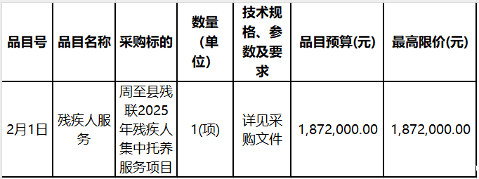 西安市周至县残疾人联合会(本级)周至县残联2025年残疾人集中托养服务项目(二次)招标公告