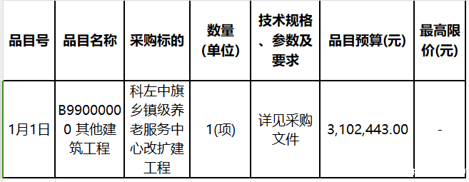 合同包1(科左中旗乡镇级养老服务中心改扩建工程):