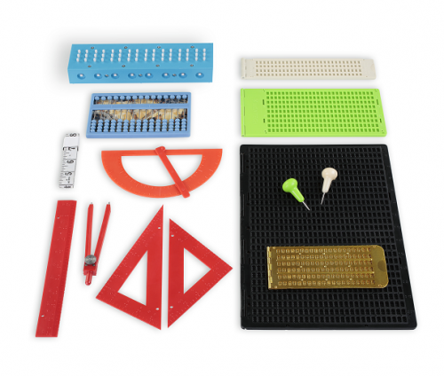 盲文写字板、算盘、圆规、量角器、三角板、软尺子、直尺。盲生学习盲文和其他学科的辅助工具,环保材质,安全无毒
