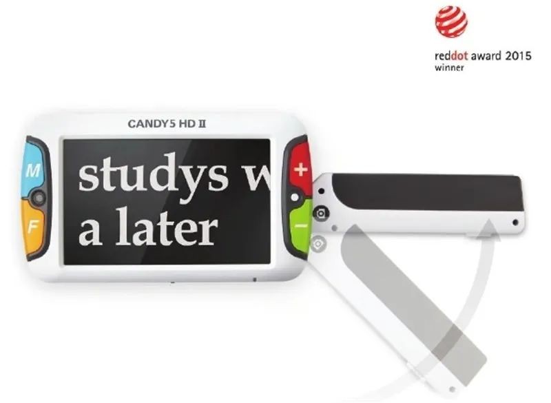该类电子助视器是助视器家族里最轻巧的一类,它的形状酷似大屏智能手机。平时可放于口袋、背包等随身携带,极大地方便了低视力者外出时使用。