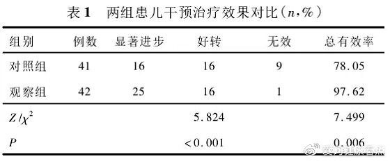 3、若与干预前对比,语言功能未改善,即为无效 。总有效率=显著进步率+好转率。
