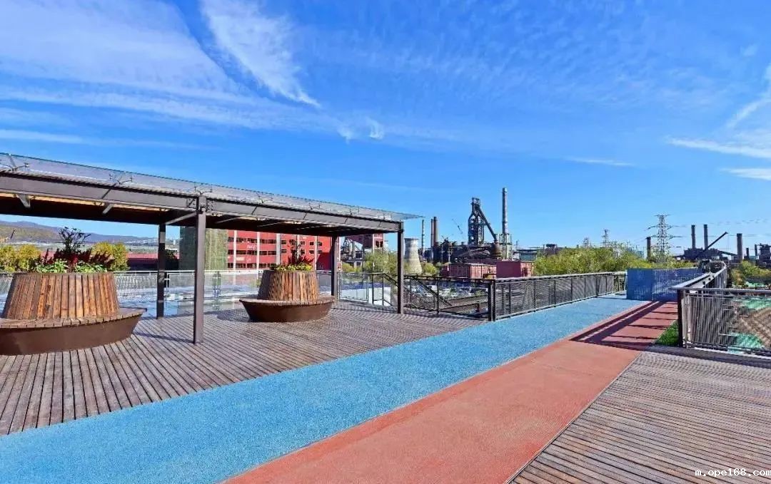 从老旧工业园转身,只为未来休闲、商业两相宜的可持续发展与宜居生活要素。高线公园是首钢园区“地下-地面-空中”三级立体慢行系统的重要组成部分。其中,群明湖北侧的空中步道长约670米,通过水体景观和现有的管廊的结合设置双层平台。步道西部顺接永定河滨河休闲公园,整体打造京西绿色生态健康廊道。