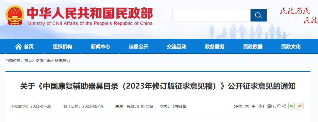 关于《中国康复辅助器具目录(2023年修订版征求意见稿)》公开征求意见的通知