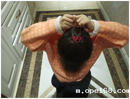 (3)梳头训练:脑瘫儿童在前方有镜子的地方坐下,如果抓握困难,可以选择加粗梳子把柄,家长演示梳头发动作使脑瘫儿童模仿,或者辅助下让脑瘫儿童上肢举过头顶做来回环转动作梳理头发(如图3-5)。