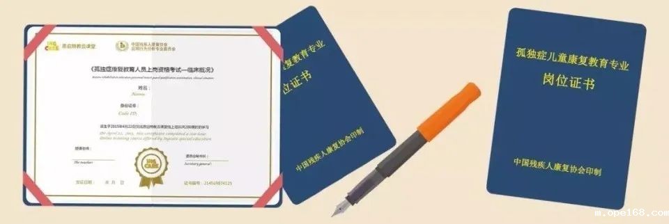 该证书是中国残联康复部委托中国残疾人康复协会联合颁发的孤独症从业人员的资格证书。