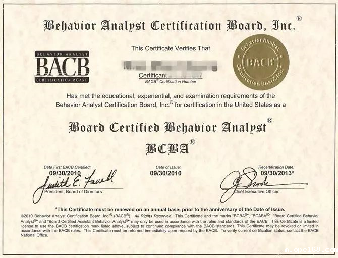 BCBA是认证行为分析师的简称,是从事应用行为分析的专业人员,也是目前国际上自闭症康复相关从业人员的资格认证。