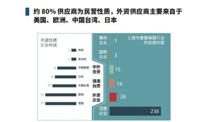通过线下调研和线上企业信息数据库的检索,将上海市康复器具协会成员单位、在上海市注册且主营业务为康复辅具的企业、在上海市注册且持有辅具专利等345家企业信息纳入本次统计范围,其中包括299家康复辅具供应商和46家康复辅具服务企业。
